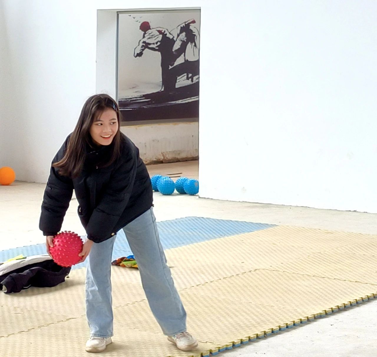 参赛者用手上的球击倒远处的矿泉水瓶子,击倒的矿泉水瓶数量越多,得到的奖品也就越多!