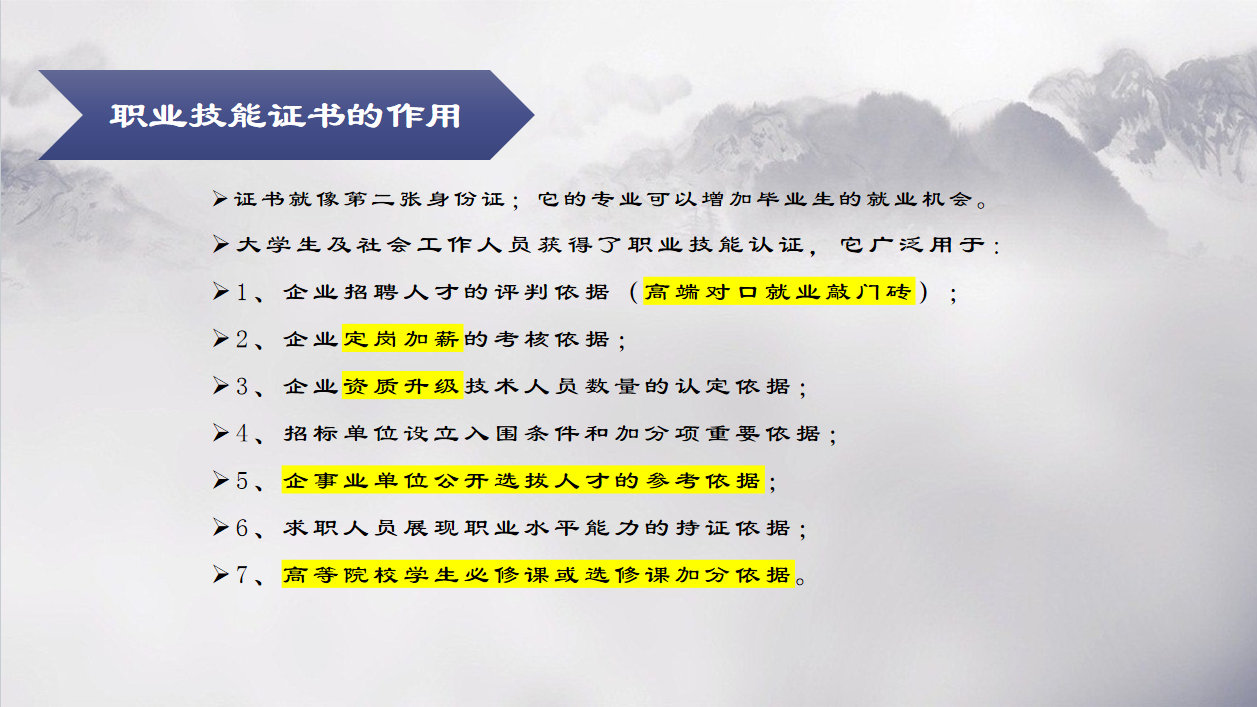 就业优先:企业招聘明确要求“持XX证优先”,薪资待遇更高;