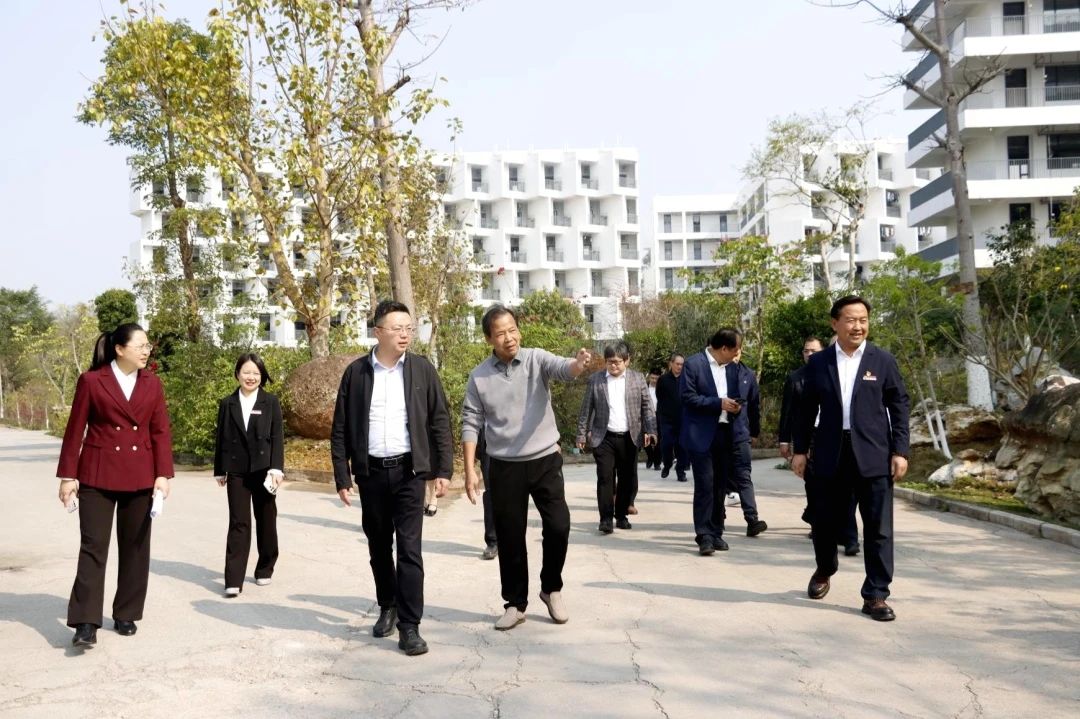 调研组一行在校领导的陪同下,先后走访了教学楼、实训基地、报告厅及校园图书室。创始人、校长陈嘉诚结合学校“以美育人”的办学理念,详细介绍了校园规划布局、绿化景观建设及智慧校园设施。来访人员对学校“花园式”育人环境表示高度赞赏,尤其对融入本土文化的景观设计频频驻足观赏。