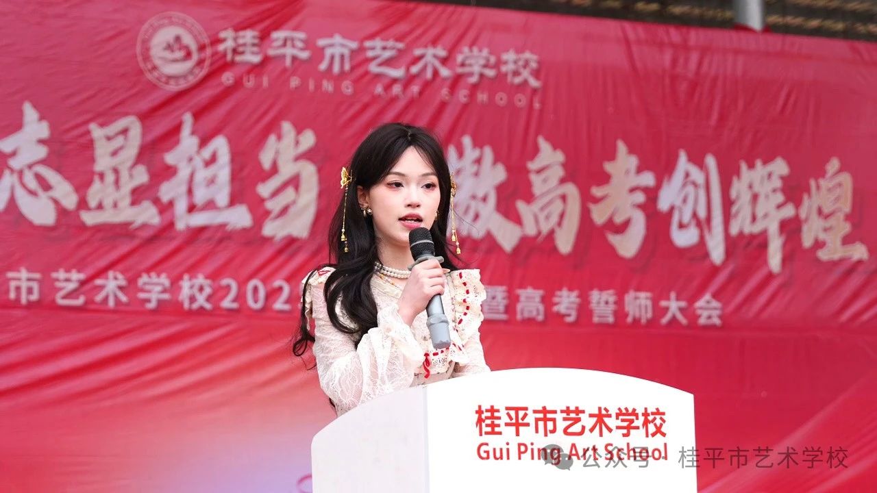 学生代表覃鲜艳慷慨发言,表达了对师长的感恩、对未来的憧憬,以及决胜高考的决心。