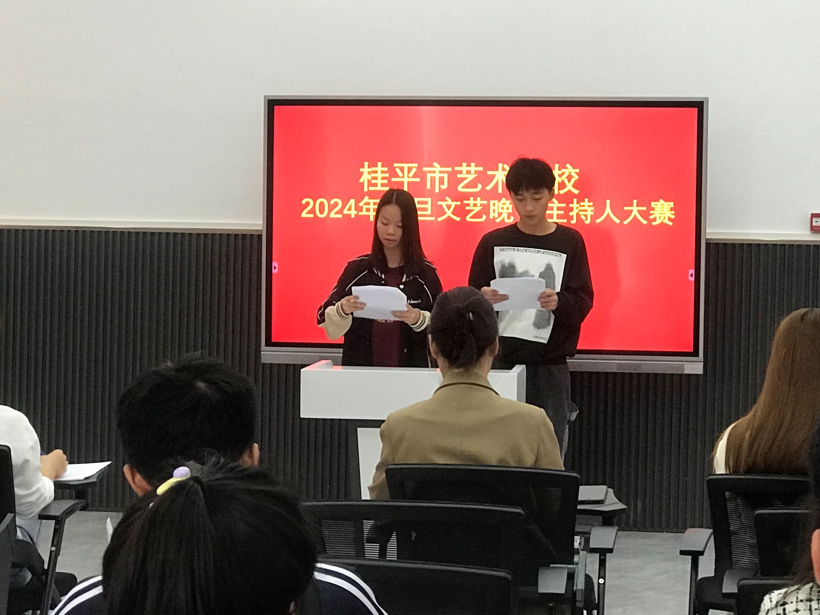 为了活跃校园文化生活,创造良好的校园文化氛围,提高同学们语言规范意识,自觉规范使用国家通用语言文字的意识和自觉传承弘扬中华优秀文化意识。我校在2023年12月14日举行了主持人大赛。