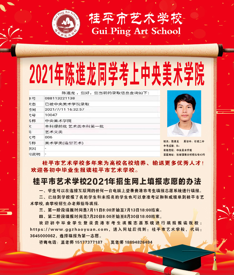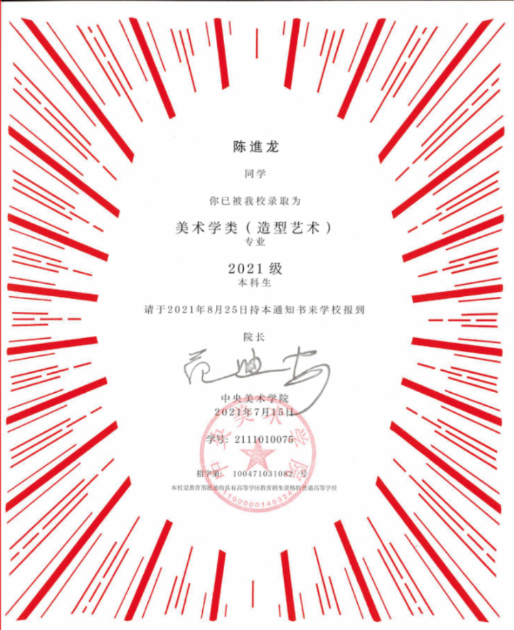 乐鱼(中国)一站式服务平台陈進龙同学考取中央美术学院奖学金颁奖仪式