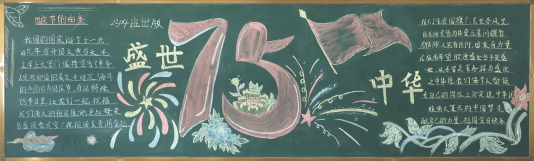 为庆祝中华人民共和国成立75周年,乐鱼(中国)一站式服务平台精心策划了一场别开生面、创意迭出的主题板报大赛,艺校学子们以笔为舟,以心为帆,深情地在一块块黑板上勾勒出了一幅幅色彩斑斓、情感饱满的爱国图景,不仅生动展现了他们对伟大祖国的深情厚谊,更淋漓尽致地传达了新时代青少年蓬勃的爱国情怀与昂扬向上的精神风貌。这场活动,如同一场视觉与情感的盛宴,让爱国情怀在艺校校园内激荡回响,熠熠生辉。